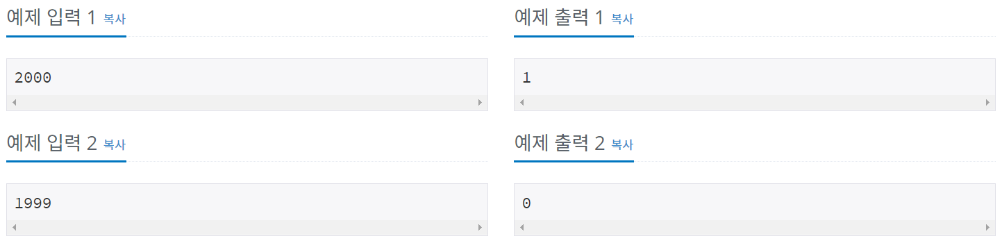 연도가 주어졌을 때, 윤년이면 1, 아니면 0을 출력하는 프로그램을 작성하시오.