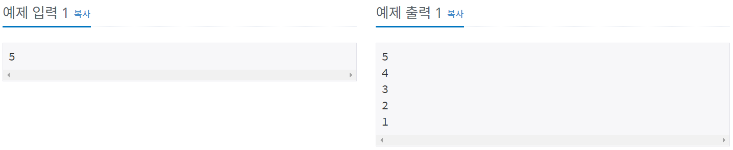 자연수 N이 주어졌을 때, N부터 1까지 한 줄에 하나씩 출력하는 프로그램을 작성하시오.