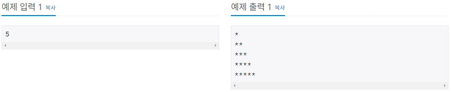 첫째 줄에는 별 1개, 둘째 줄에는 별 2개, N번째 줄에는 별 N개를 찍는 문제