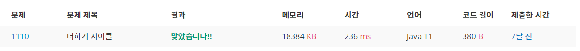 1110번: 더하기 사이클