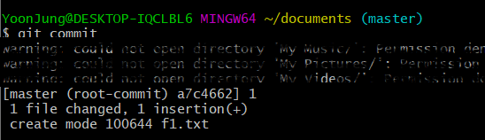 위에 사진을 보면 f1.txt만 add했으므로 f1만commit 가능