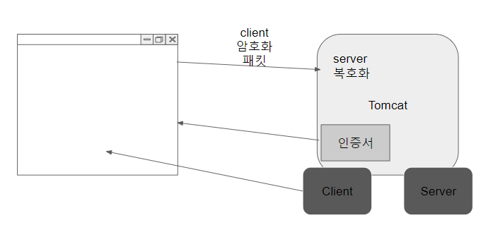 - 서버측에서는 서버에 대한 정보와 인증 등이 담긴 인증서와 공개키(비대칭키)를 인증기관에 등록