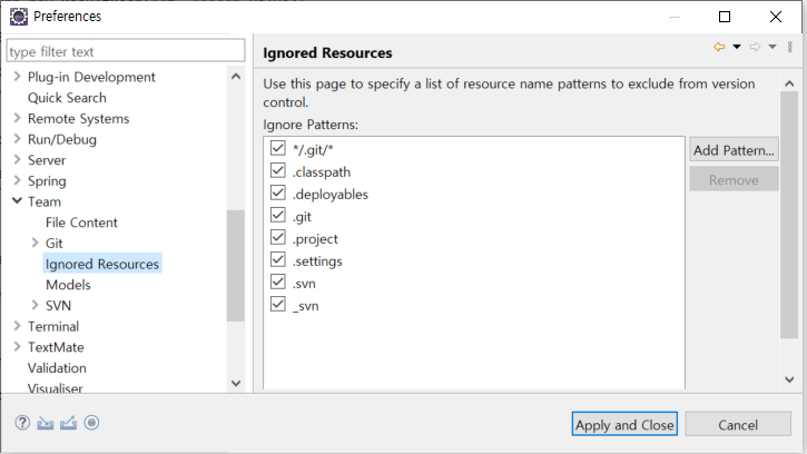 여기서 Add Pattern을 클릭한 후 올리지 않을 파일명을 적으면 된다.