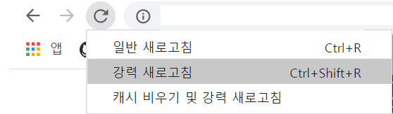 개발자 도구를 킨 상태로 새로고침을 꾹 누르면 창이 생성됨 여기서 강력 새로고침을 클릭