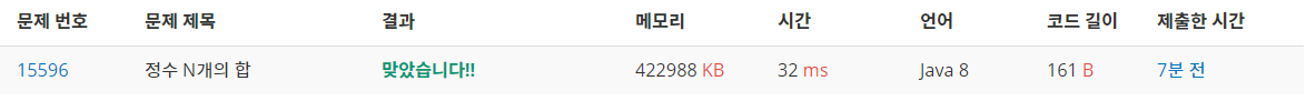 15596번: 정수 N개의 합