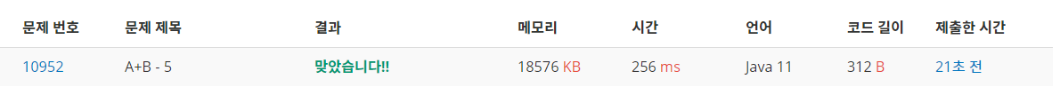 10952번: A+B - 5