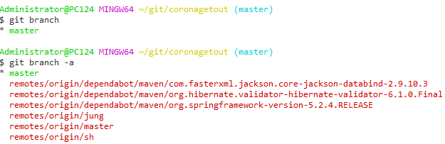 git branch -a를 하면 모든 브랜치를 볼수 있음