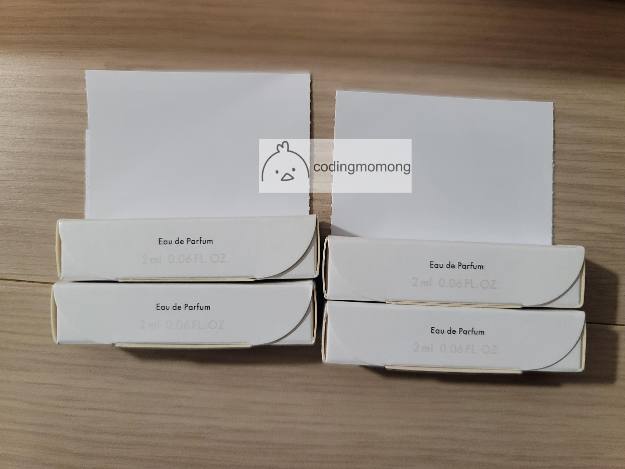 가방을 사니 향수 샘플을 줬다. 언니랑 둘이가서 그런가 2가지 향수를 2개씩 줬다.