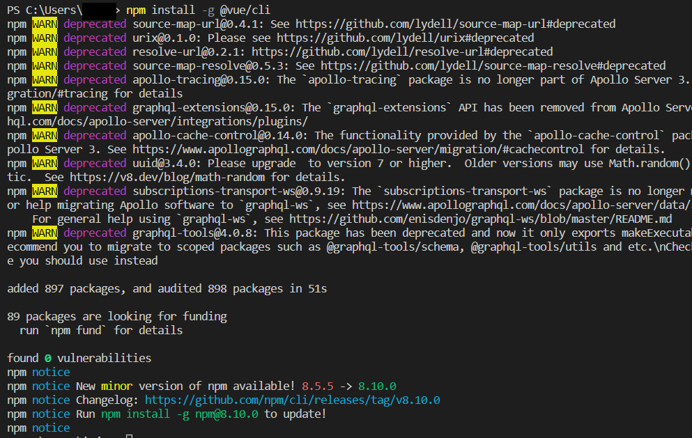 # Window sudo npm install -g @vue/cli