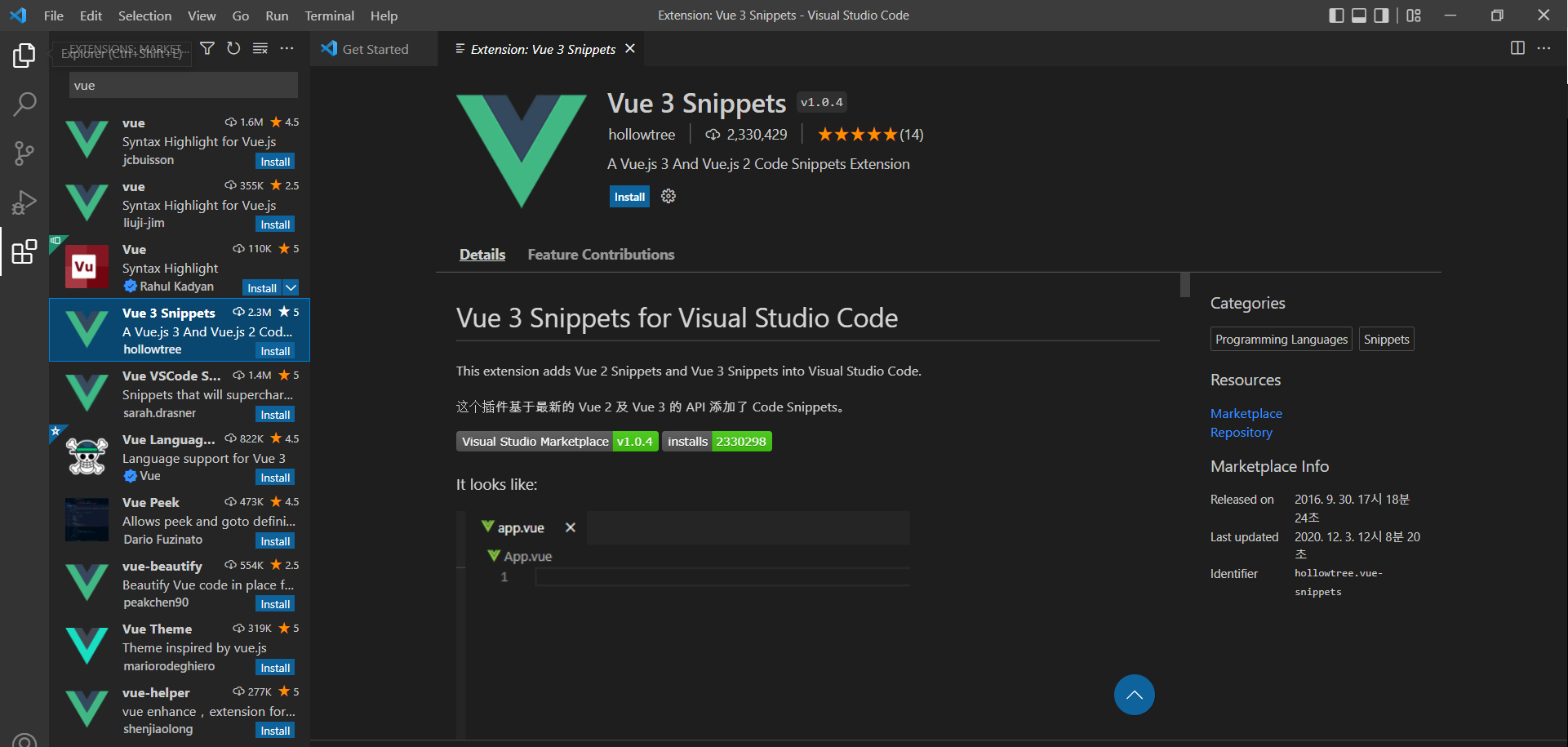 3. Vue 3 snippets 설치