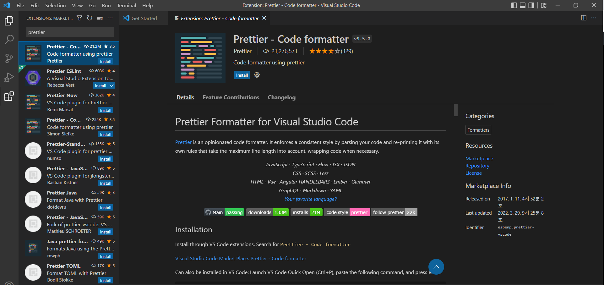 2. Prettier - Code formatter 설치