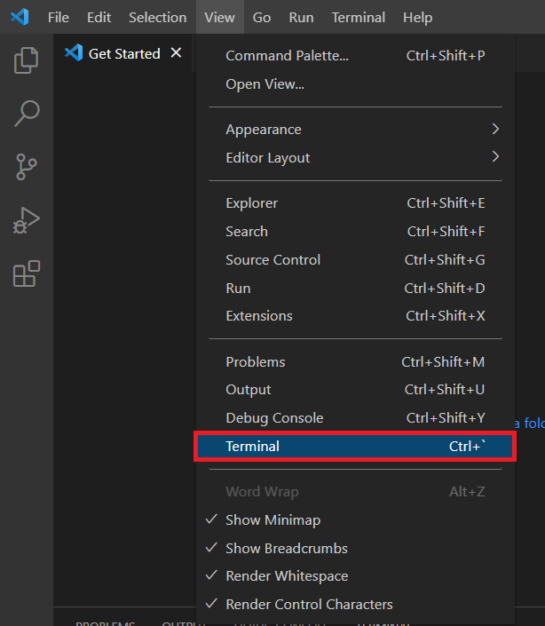 visual studio > View > Terminal