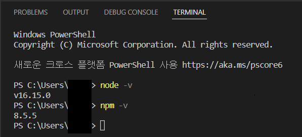 # nodeJS 버전 확인 node -v # npm 버전 확인 npm -v