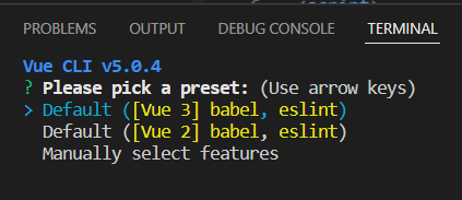 Default ([Vue 3] babel, eslint) 선택 후 Enter