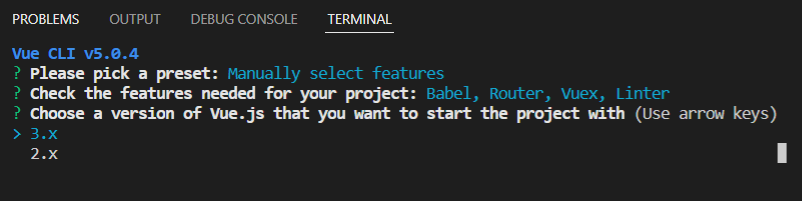 Choose Vue version: Vue 버전을 선택 가능