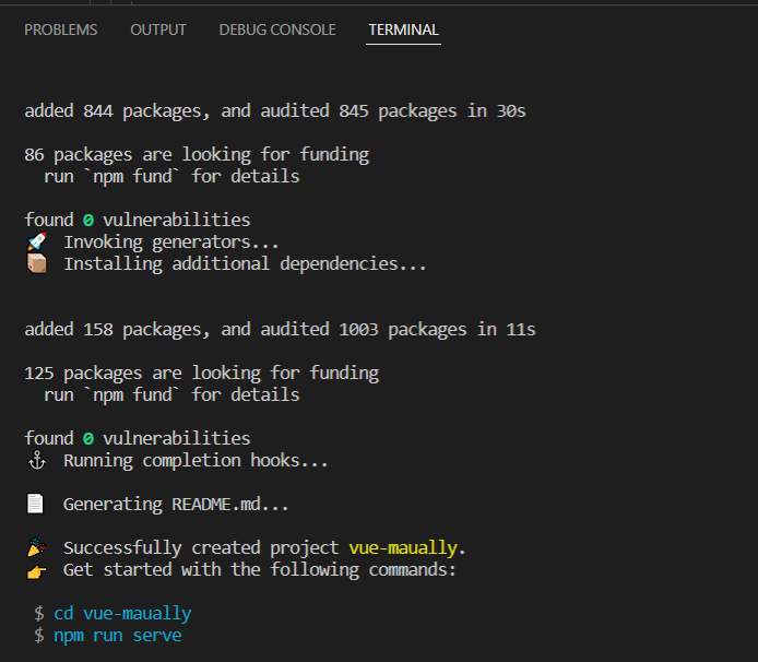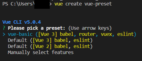 # 프로젝트 생성 vue create [프로젝트명]