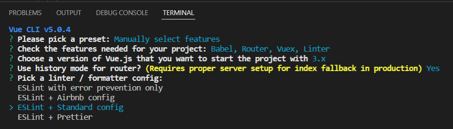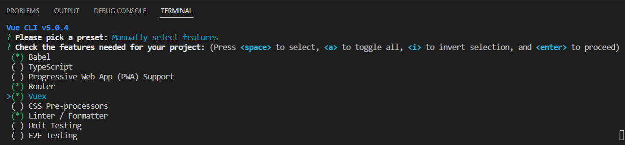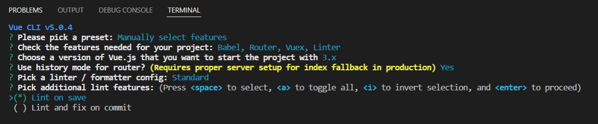 [VueJS] 사용자 선택(Manually select features) 옵션으로 Vue 프로젝트 생성하기Study/VueJS 2022. 5. 26. 14:34